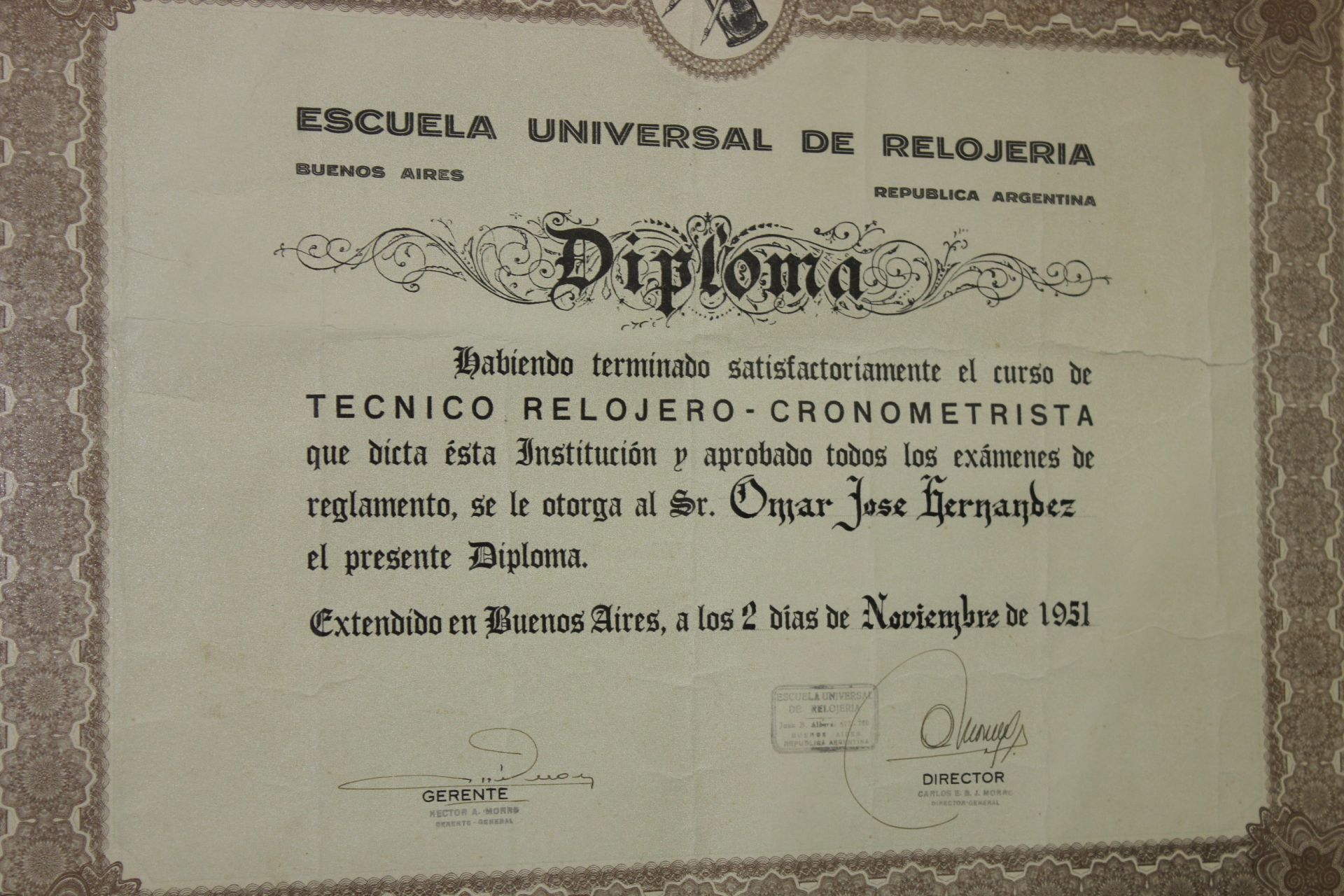 Es que esta tradicional joyería, ubicada en pleno centro de Roca, forma parte del ADN no sólo de la familia Hernández sino también de la ciudad que, en 1961, vio a don Omar José Hernández (su papá) colgar en una de las paredes de su primer local comercial, ubicado en calle Belgrano al 400, el diploma de «Técnico Relojero-Cronometrista» que le otorgó La Escuela Universal de Relojería.