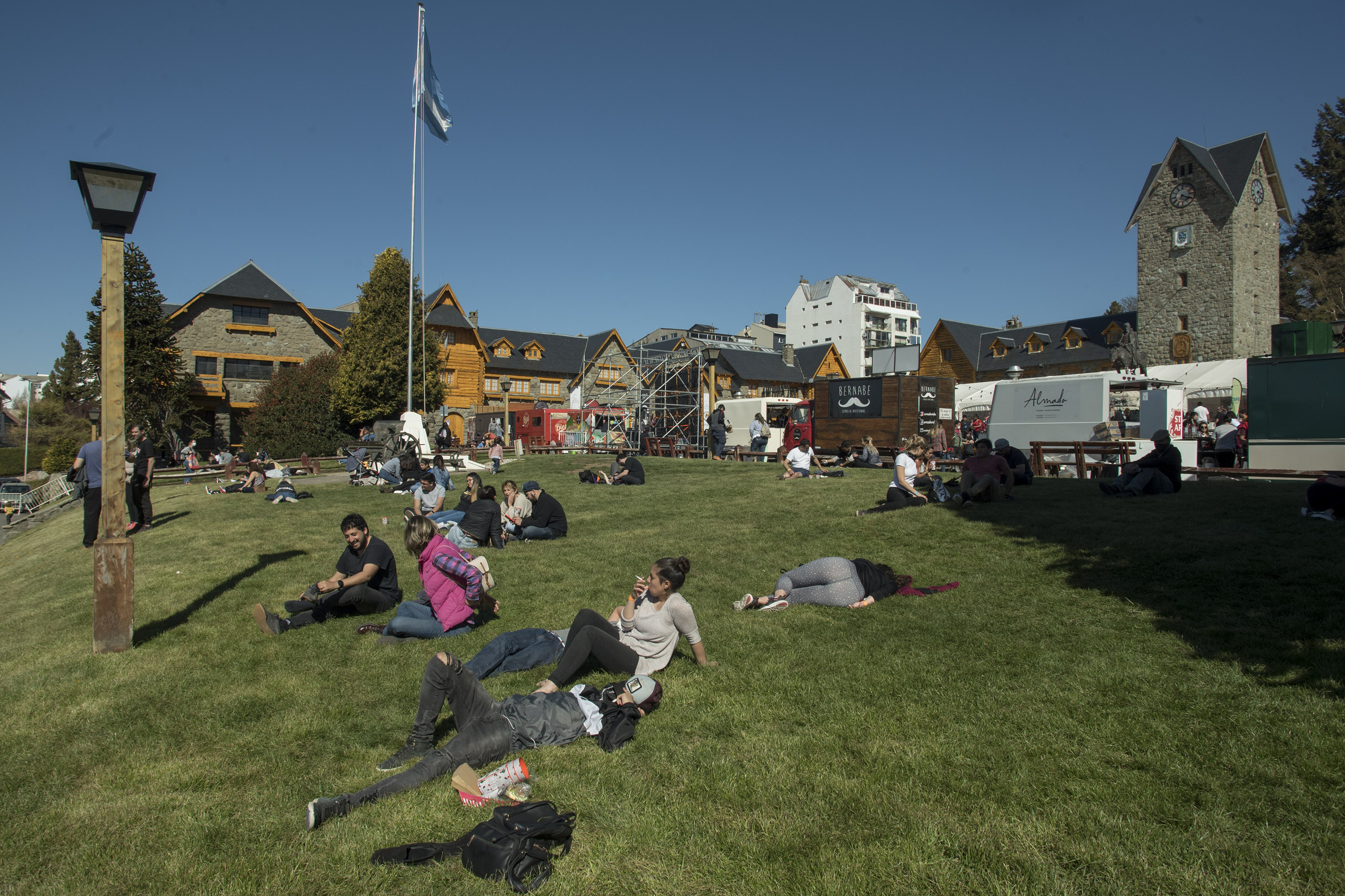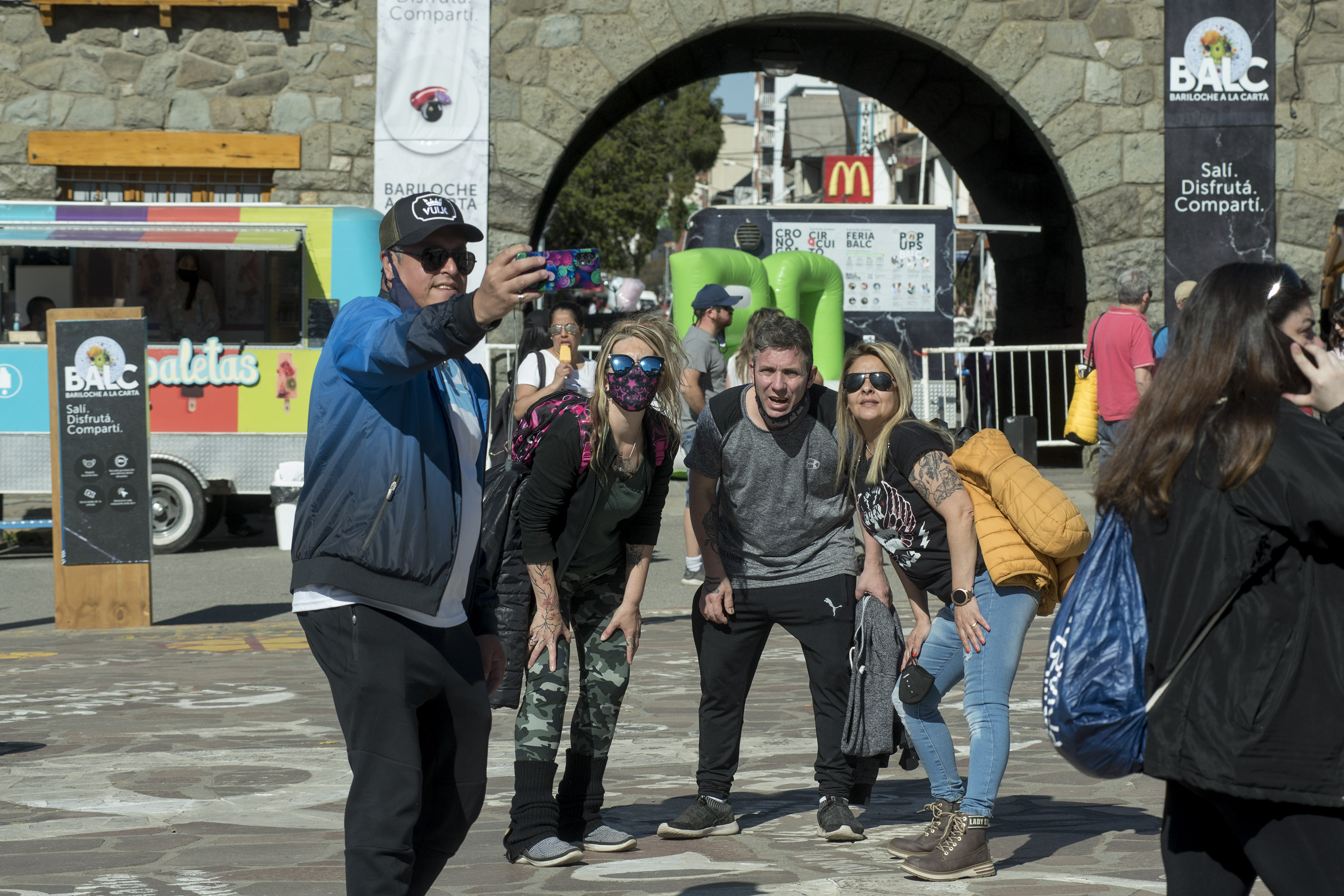 A primera hora del sábado, con un sol radiante y el termómetro que marcaba 14 grados, la gente se tomaba fotografías la costa del lago Nahuel Huapi, caminaba por los muelles, consultaba por excursiones y recorría chocolaterías y casa de artículos regionales.