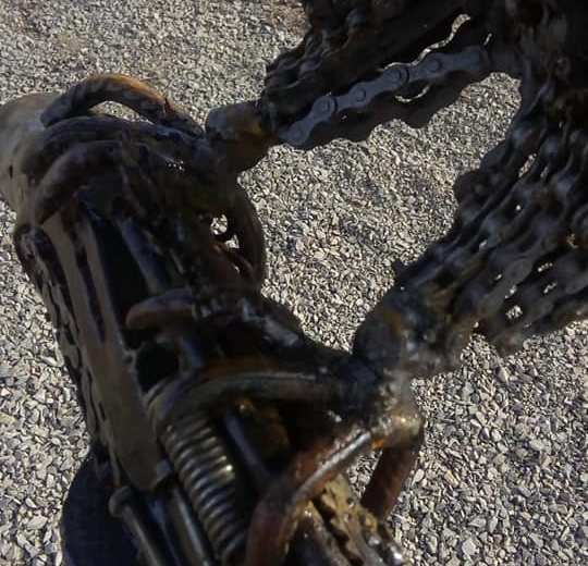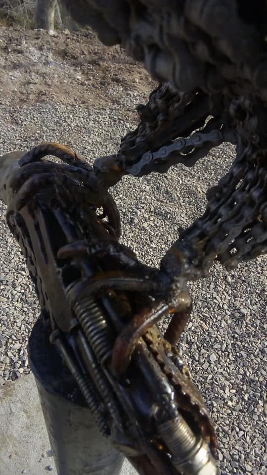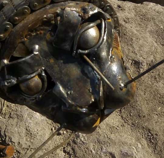 Los autores de las obras de arte de metal se encuentran en el lugar para efectuar las reparaciones.