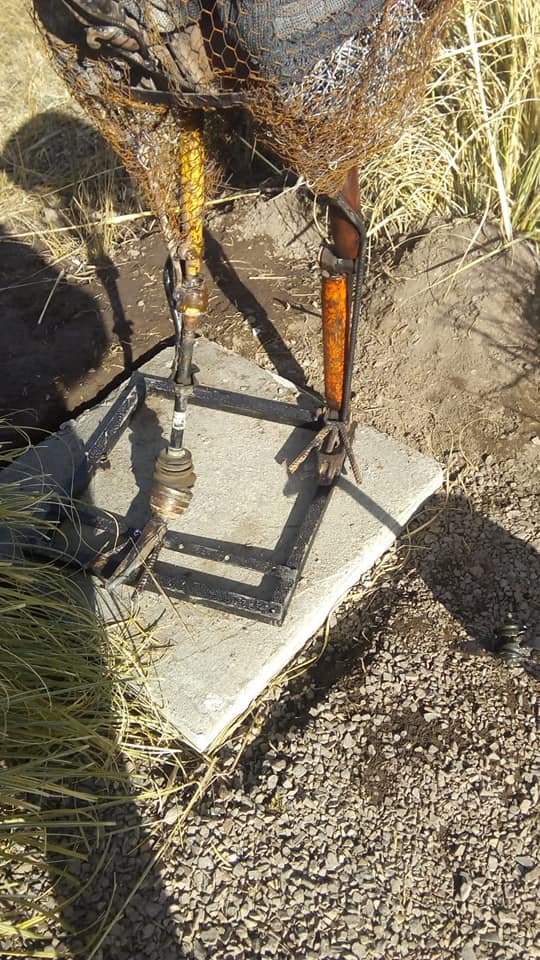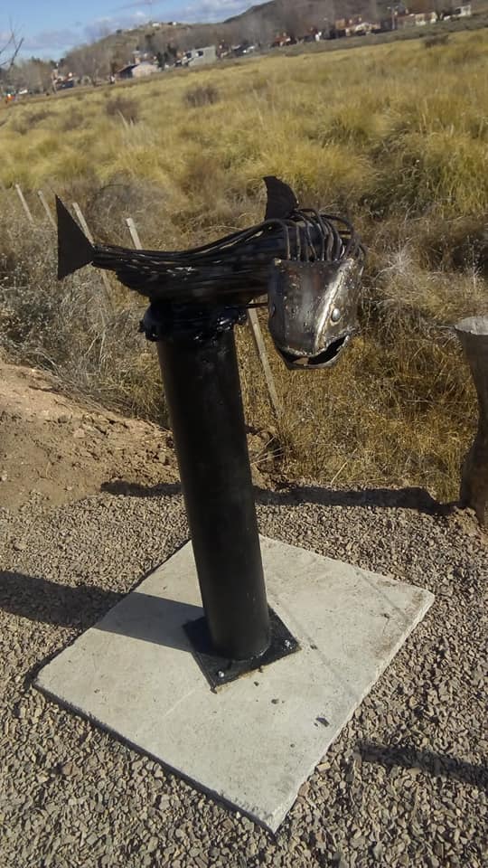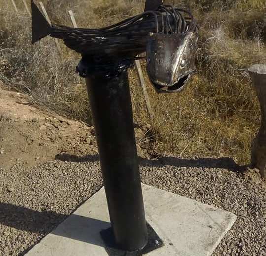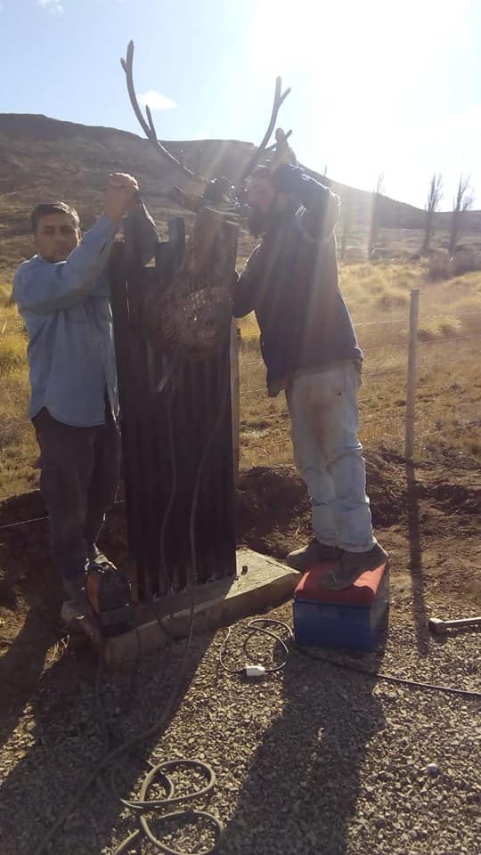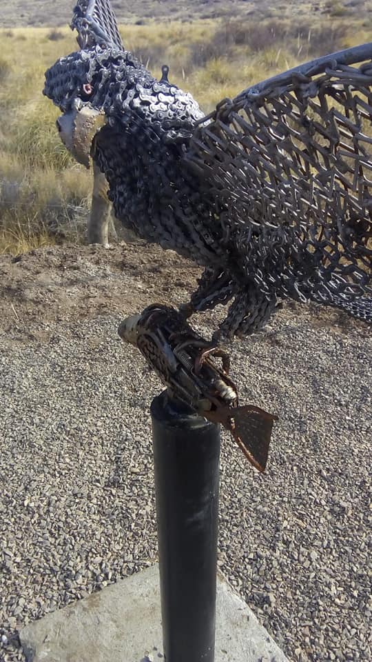 Las obras de arte fueron realizadas por los hermanos Ezequiel y Gerardo Zapata, y fueron colocadas en el portal de ingreso de la localidad de Piedra del Águila.