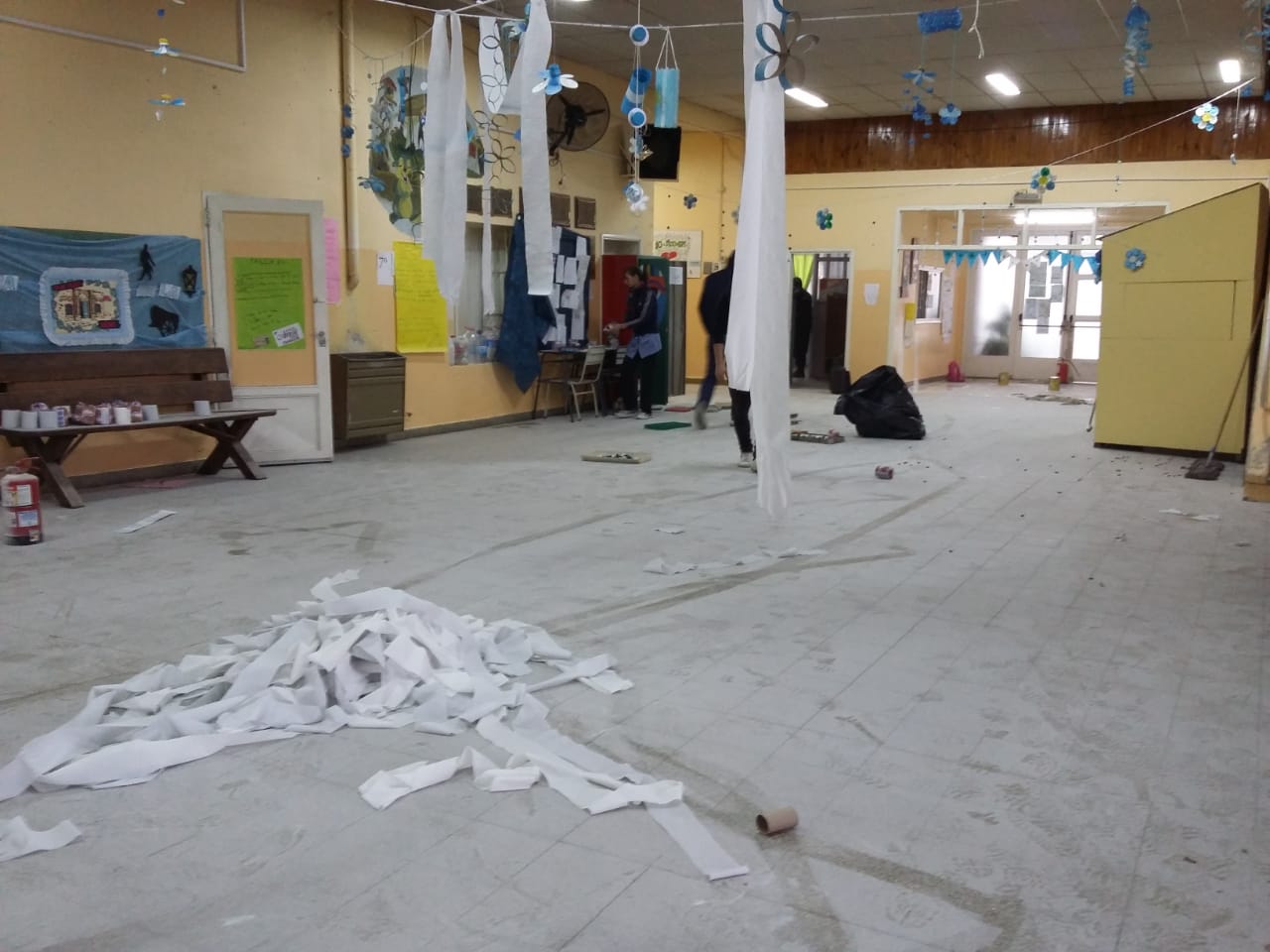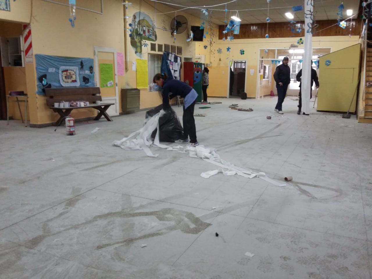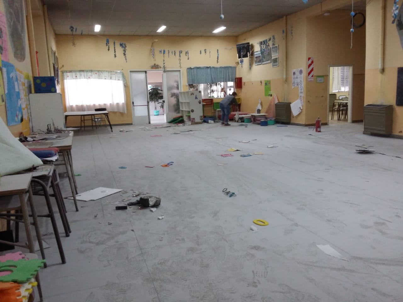 El hecho fue detectado a primera hora de la mañana de este lunes cuando porteros del establecimiento ingresaron y se encontraron con un desolador panorama: libros tirados, pinturas arrojadas contra paredes y pizarrones, matafuegos descargados en la galería, alimentos tirados, faltante de elementos de computación, pelotas faltantes, entre otras cosas.