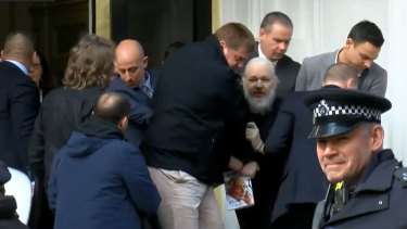Un video publicado en internet por Ruptly, la agencia vinculada a Russia Today, mostró unos cinco o seis hombres vestidos con traje escoltando a la fuerza a Assange fuera de la sede diplomática, rodeándolo mientras bajaban las escaleras y subían a una camioneta de la policía.