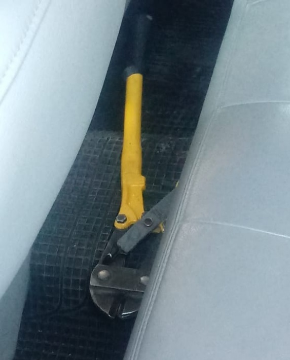 Dentro del vehículo también advirtieron la presencia de una tijera corta pernos, que habitualmente se utiliza para el corte de cadenas y candados.