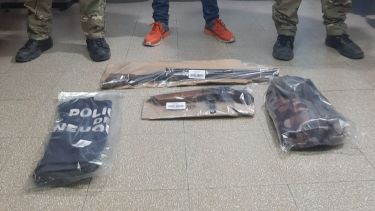 Además, un chaleco porta placa de tela color azul, con la inscripción “Policía de Neuquén», un automóvil Volkswagen Gol, de color blanco; y una mochila de color marrón.