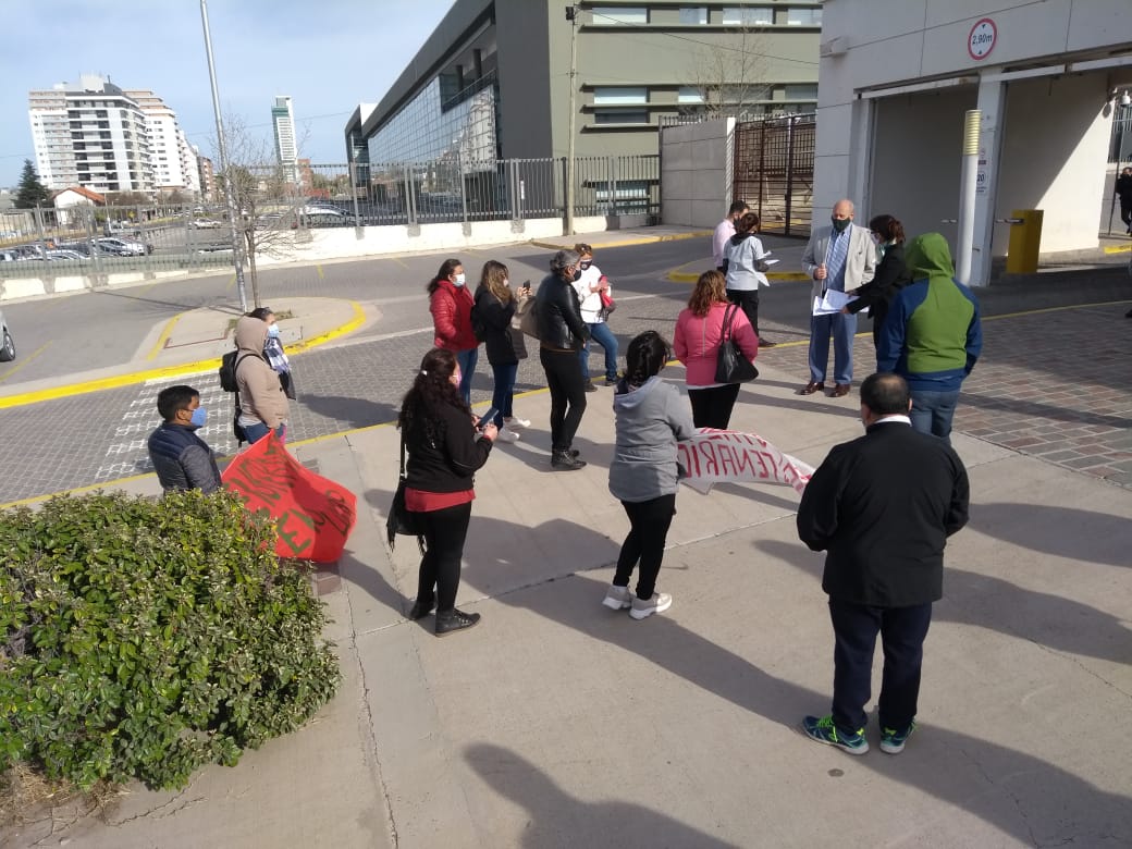 En la capital rionegirna la convocatoria frente al hospital Artémides Zatti, derivó en una manifestación hacia la sede central del Ministerio de Salud de la provincia donde representantes de los trabajadores fueron recibidos por Fabián Zgaib, titular de esa cartera.