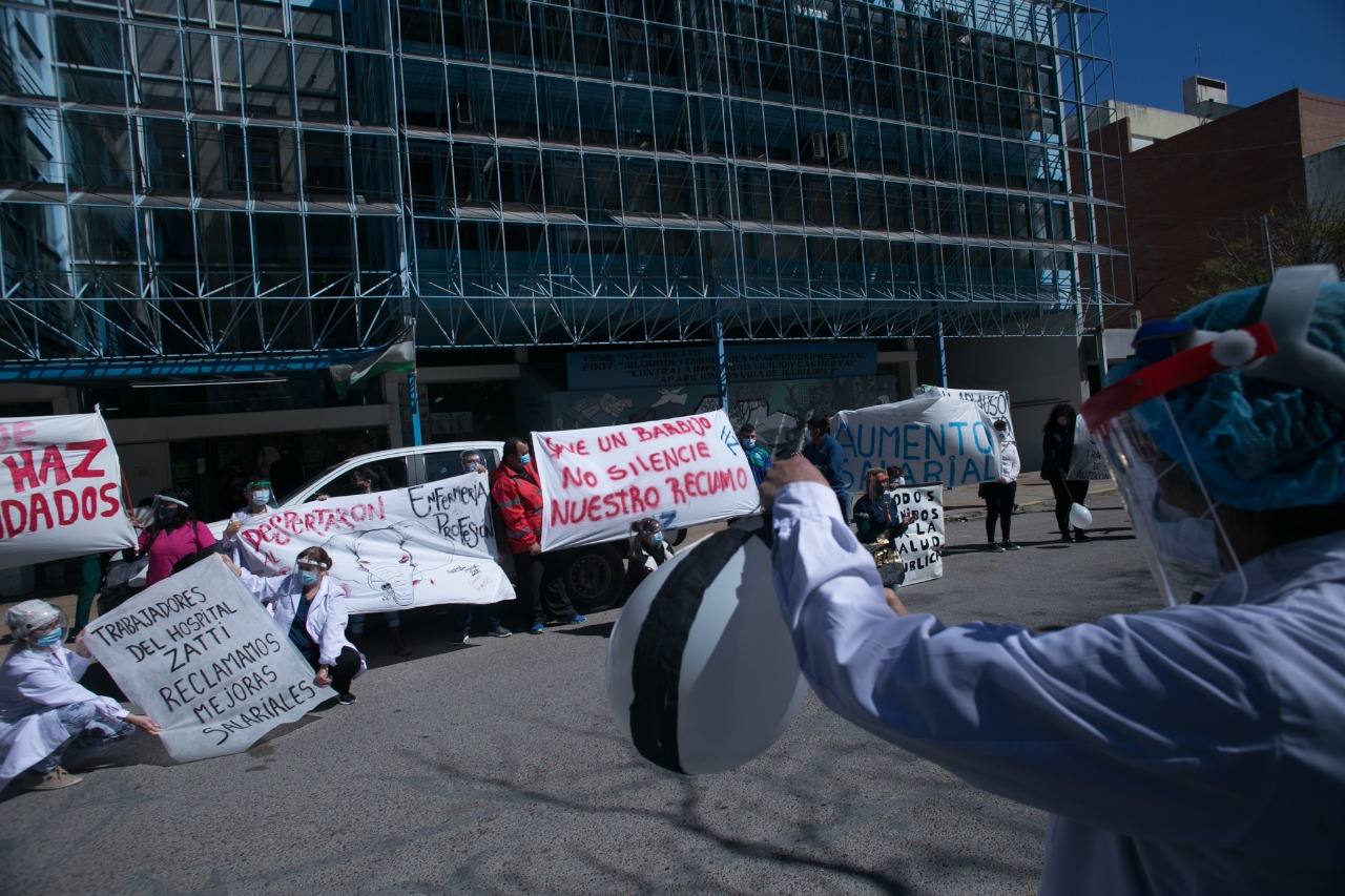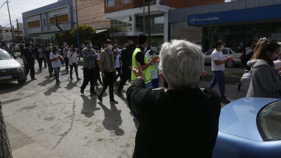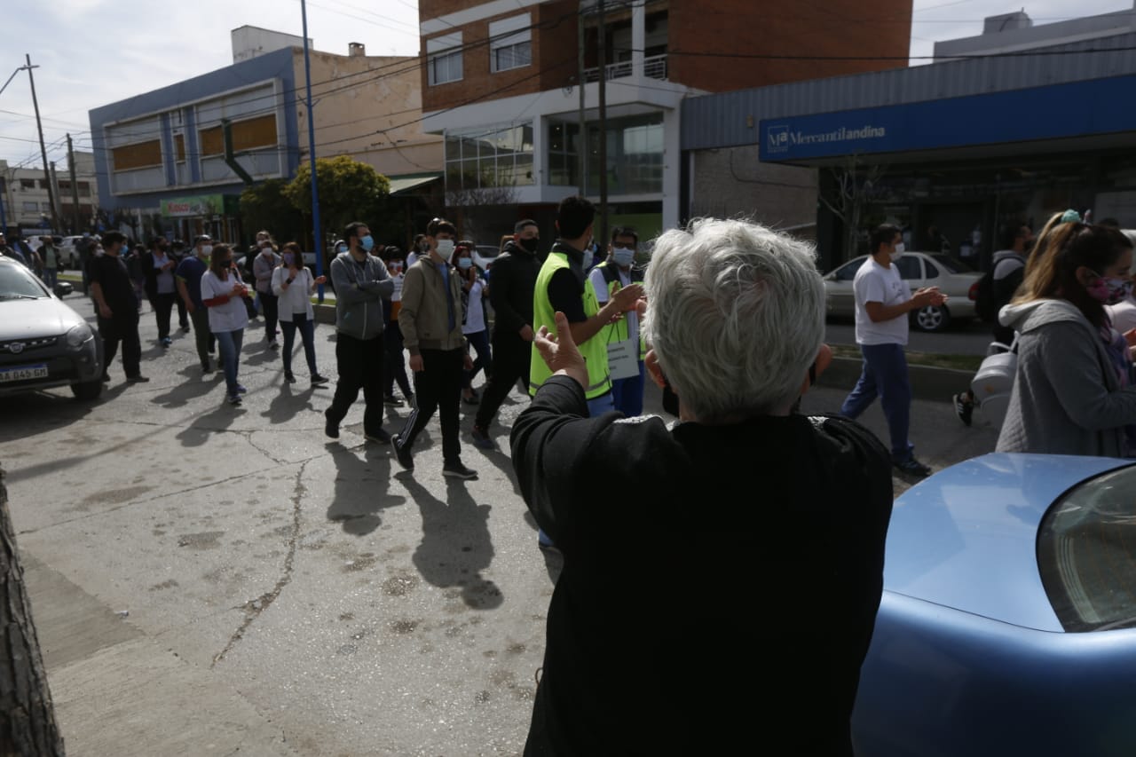 Más de doscientas personas se concentraron en el hospital, pertenecientes a ese lugar y de los distintos centros de atención primeria que funcionan en la capital provincial y luego de permanecer durante algunos minutos frente al ingreso principal se decidió la marcha hacia Salud por calles Tucumán y Laprida.