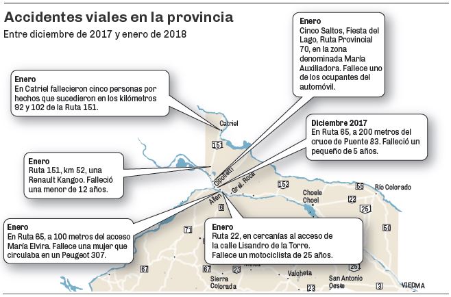 *El último fin de semana de enero se produjeron tres hechos fatales. El primero en la Ruta 151, en el que falleció una menor de 12 años que circulaba junto a su familia en una Kangoo y no habría llevado el cinturón puesto.