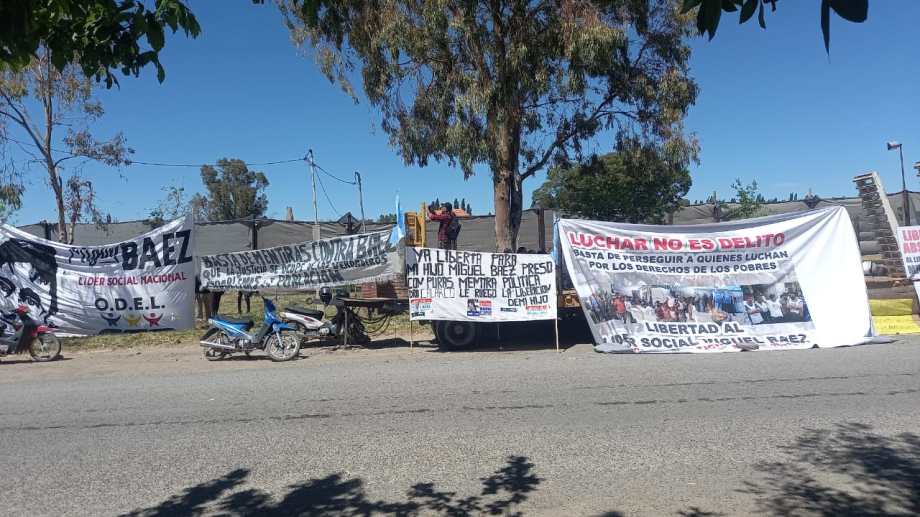 Un grupo de representantes de la Organización de Desocupados en Lucha (ODEL), está apostado a metros del acceso a la Comisaría 47 de J.J. Gómez, donde se encuentra detenido el dirigente Miguel Báez. La movilización se produce minutos antes de que un tribunal lea el veredicto del proceso al cual fue sometido el dirigente tras una denuncia por abuso sexual.