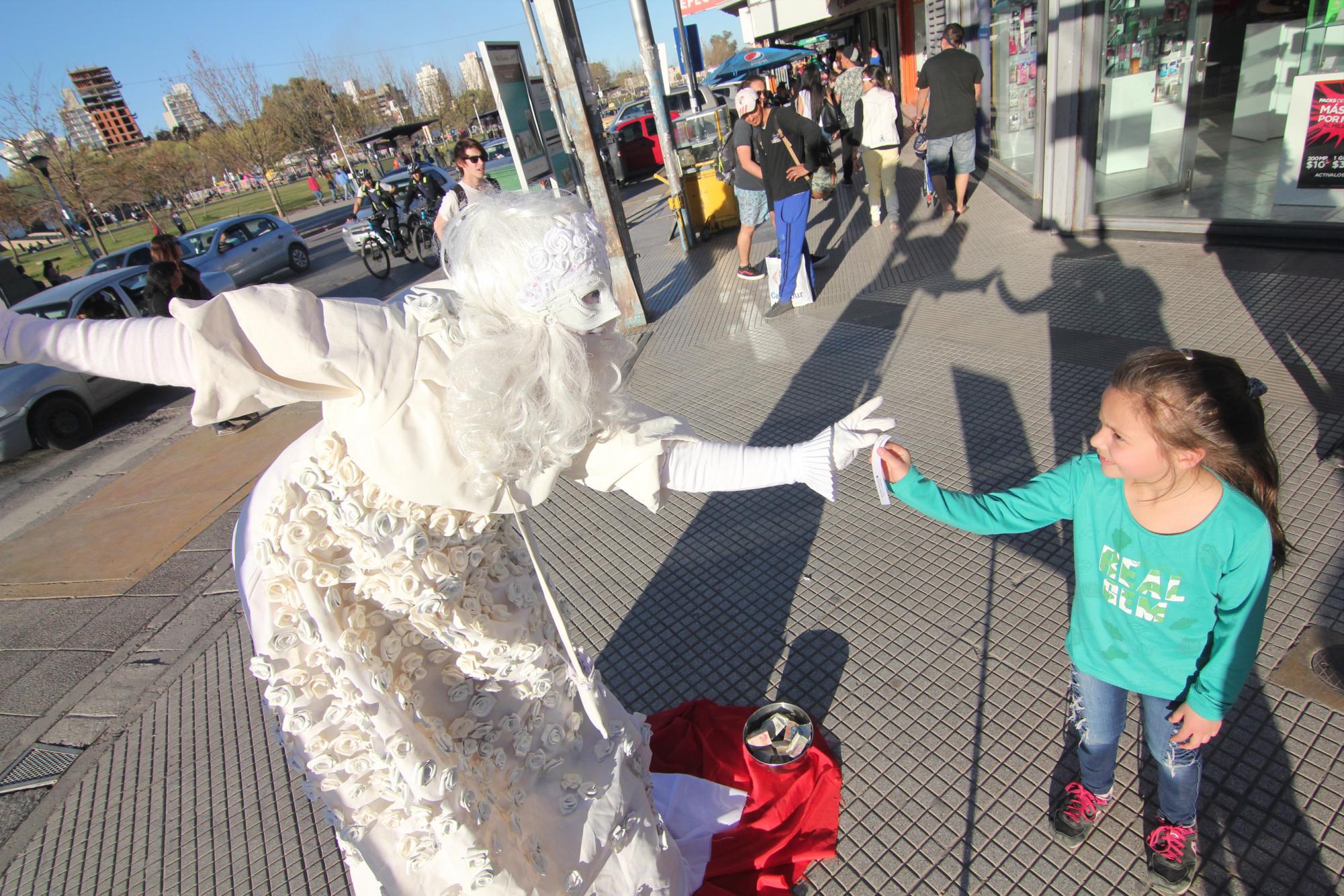 Entre las calles Mitre y Perito Moreno de la ciudad, mostraron su arte siete estatuas vivientes en un paseo en el bajo neuquino.