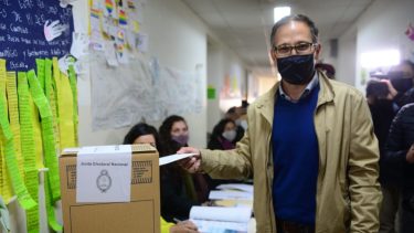 Agustín Domingo, el primer candidato a diputado nacional por Juntos Somos Río Negro, llegó minutos antes de las 9 a la Escuela Secundaria Rionegrina 104 de Bariloche, bajo una llovizna tenue. Al emitir su voto dijo tener expectativas de mejorar los resultados de las PASO y valoró que se evidencia mayor participación.