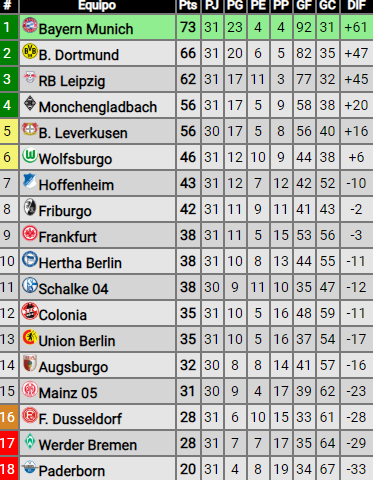 De esta manera, mantuvo los siete puntos de ventaja en la cima y si el martes le gana a Werder Bremen se consagrará campeón de la liga por octava vez consecutiva.