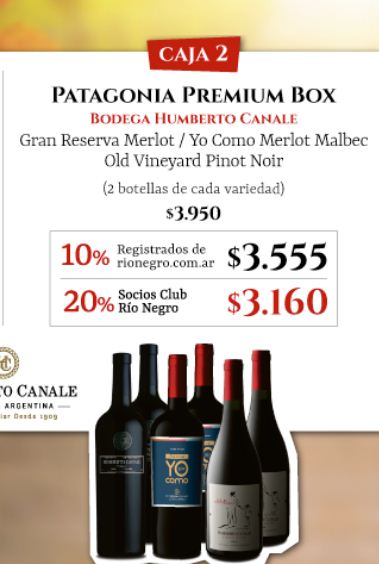 • De la misma bodega Canale, está también la Promo 2, llamada Patagonia Premium Box.