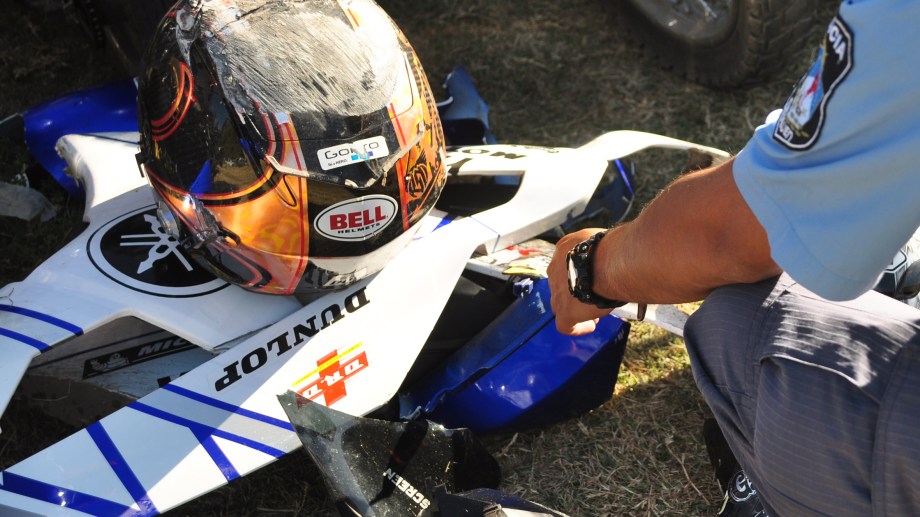 Aunque ambos llevaban sus cascos el impacto fue de gran tenor y las lesiones creaneales resultaron mortales.