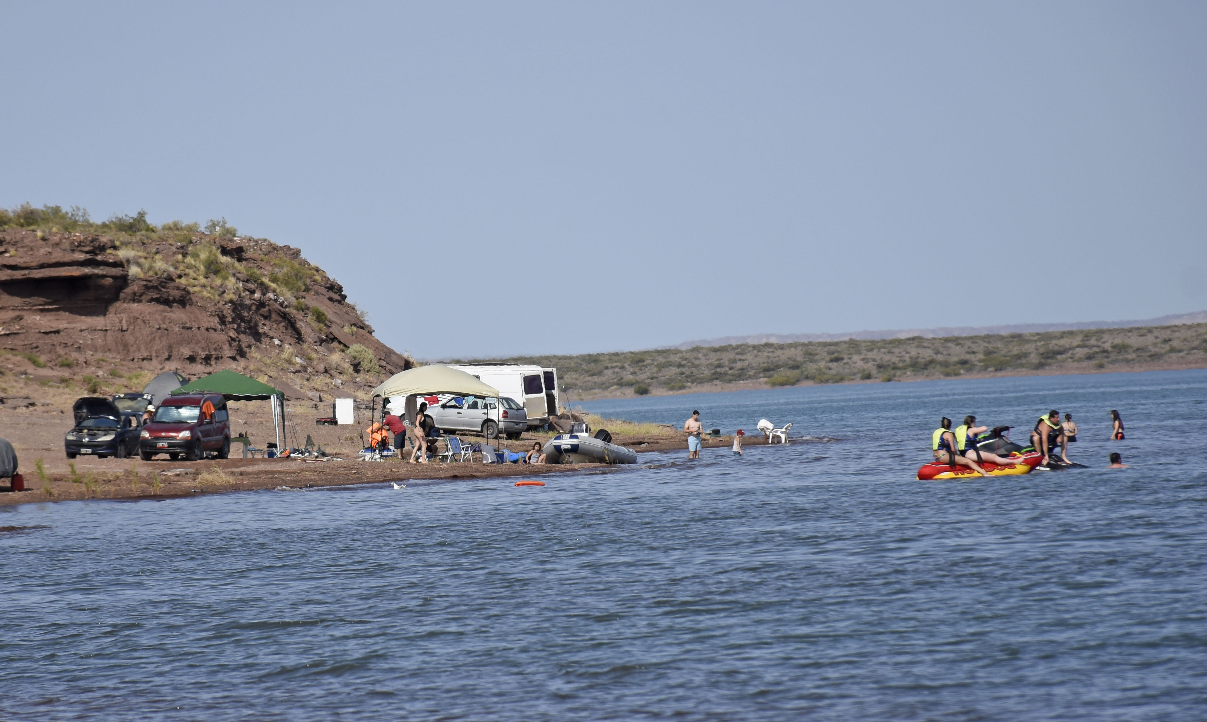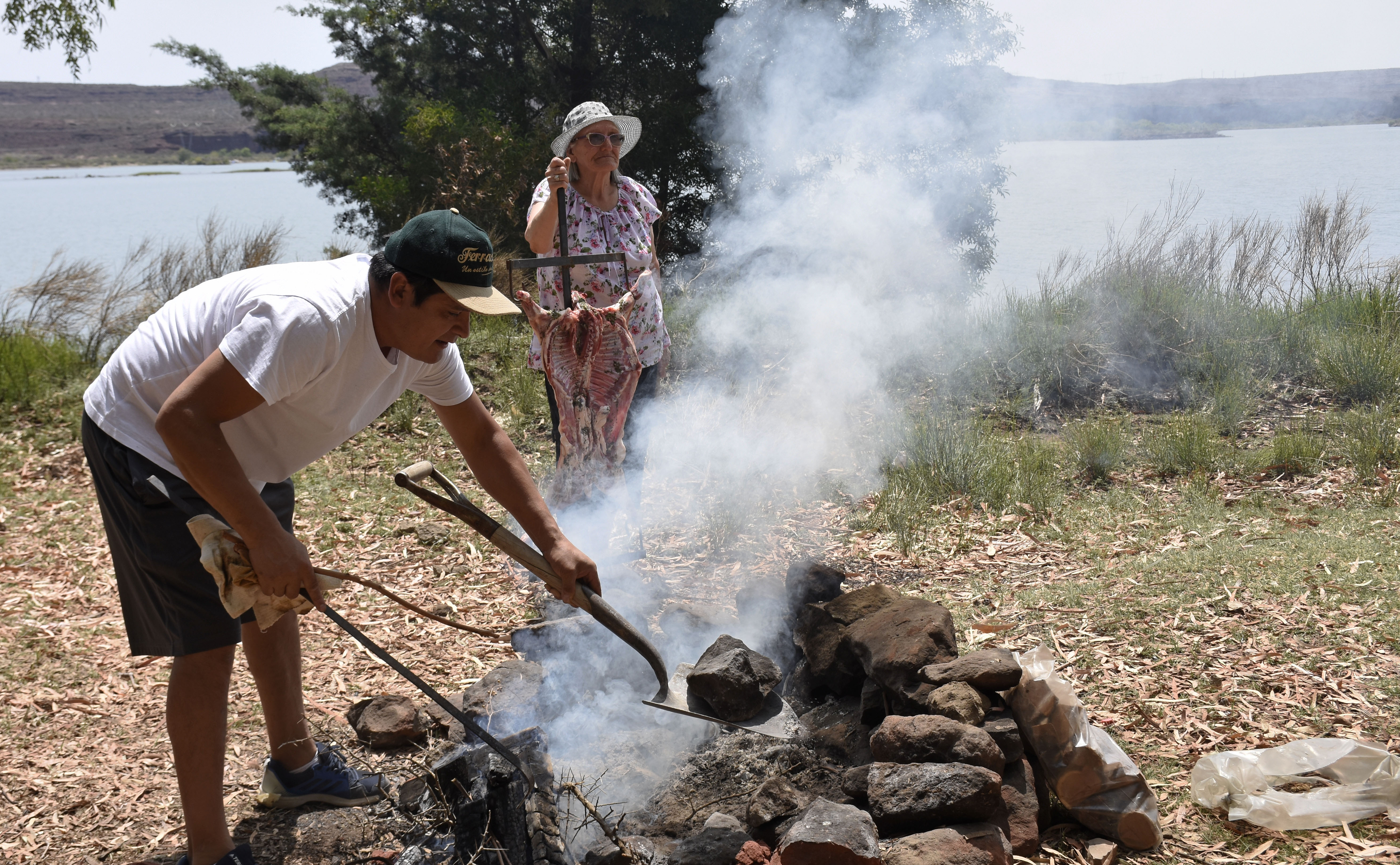 Mientras sostenía un chivito que habían llevado desde Malargüe para el asador, María de Cutral Co contó que visita esa costa hace unos 25 años, cuando casi nadie la conocía. Por aquel entonces, sus hijos eran chicos y ahora cada uno formó su propia familia. Eso no impide que sigan yendo a disfrutar del agua del Limay todos juntos, aunque con un escenario diferente: los que chapotean en el agua ya no son los hijos pequeños de María, son sus nietos.