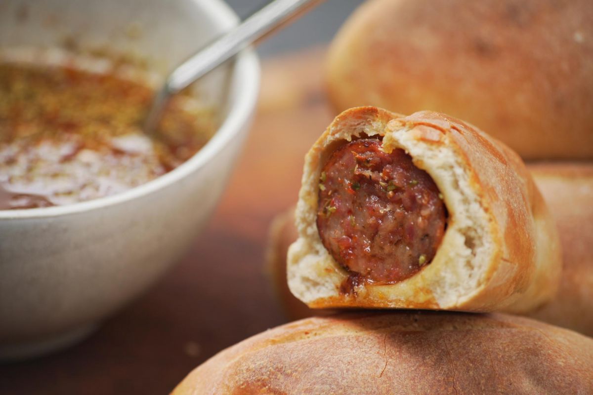 4.- Envolver los chorizos y cerrar la masa con el cierre para abajo.