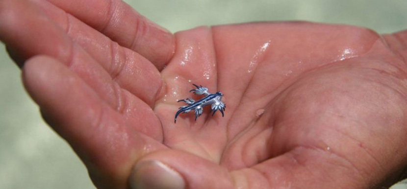 Tienen tres centímetros de largo y los dragones azules “vuelan” sobre el agua. Son pequeñas babosas marinas llamadas glaucus atlanticus. Habitan los océanos Atlántico, Pacífico e Índico.