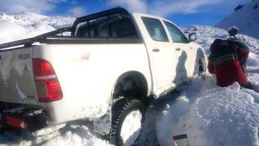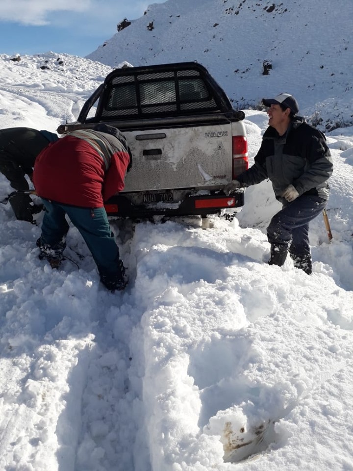 Tuvieron que vadear el río Pichi Leufu, subir pendientes muy abruptas, y en distintos sectores del camino, la nieve cubría más de la mitad de las cubiertas de los vehículos, por lo que, a pesar del uso de cadenas, se hacía muy difícil poder avanzar. Se quedaron varias veces encajados.