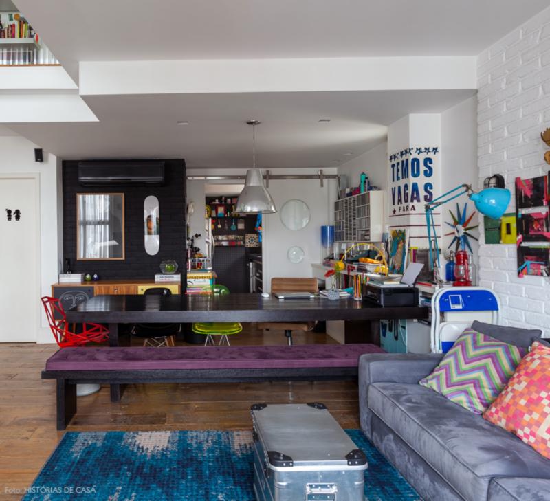 La pareja que ocupó este dúplex hace siete años sabía que quería aprovechar cada metro cuadrado. Sabía también que quería imprimirle la estética de los lofts a cada rincón. Y planificó entonces una vivienda integrada, con pocas paredes, muchas luz natural y objetos coloridos en cada lugar posible, para generar espacios funcionales y divertidos. La historia transcurre en Pinheiros, un barrio de San Pablo que hace honor a la fama de nuevo centro del diseño en Brasil que se ganó la gran ciudad, que a la vez es el eje de la actividad económica del gigante de América Latina.