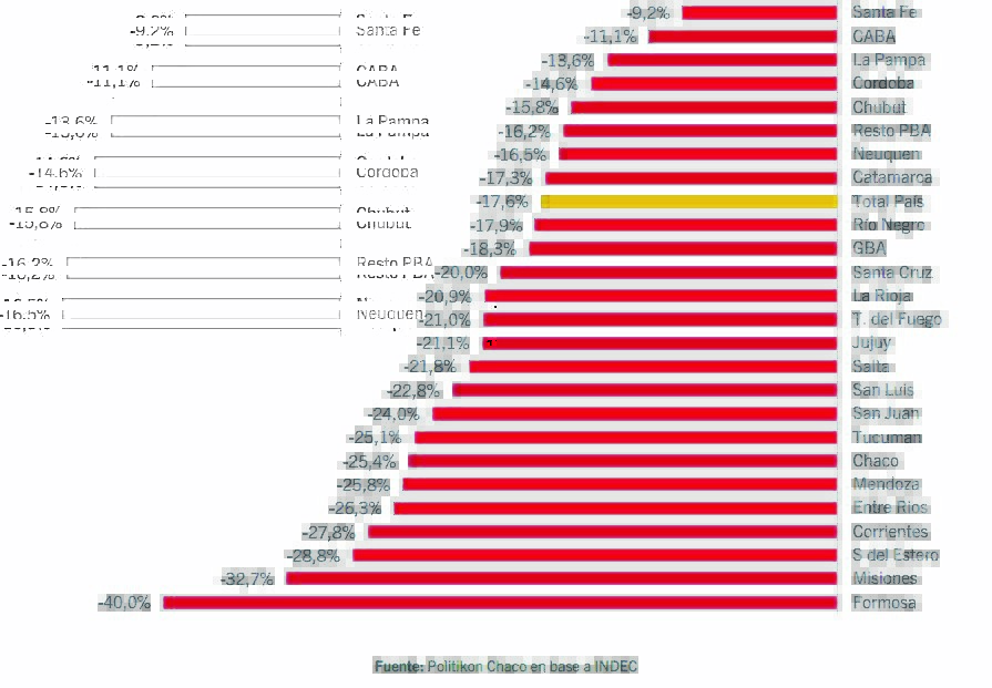 Se trata de la sexta caída consecutiva de este indicador en el nivel nacional, además de ser la más profunda desde que se inició la nueva serie de medición de este indicador (2017), según se indicó en un informe de la consultora Politikon Chaco.