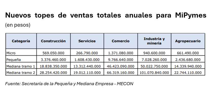 Los nuevos topes de ventas totales anuales para cada sector sufrieron un aumento respecto a la resolución anterior, que se pueden visualizar de la siguiente manera: