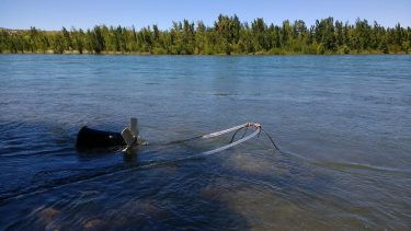 Bomba de río. Debe anclarse y flotar con la mitad del cuerpo sumergido.