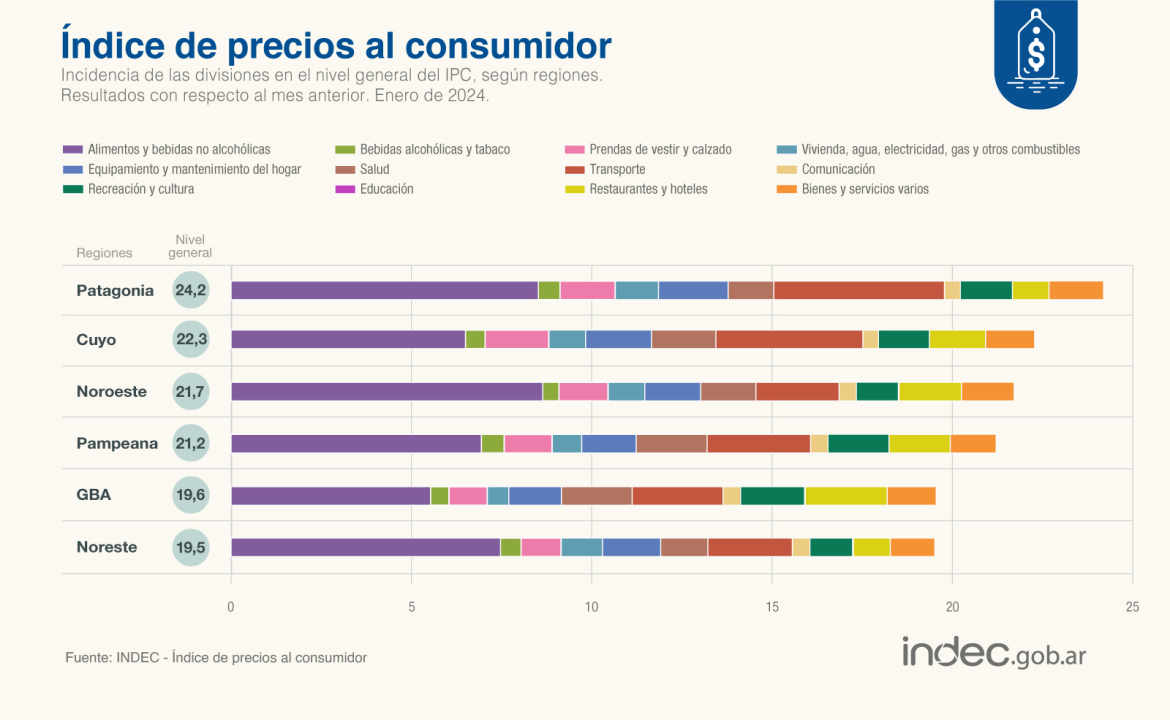 En el caso de la Patagonia, el índice general se ubicó en el 24,2%. Se trató de la región más afectada del país por las subas de precios.