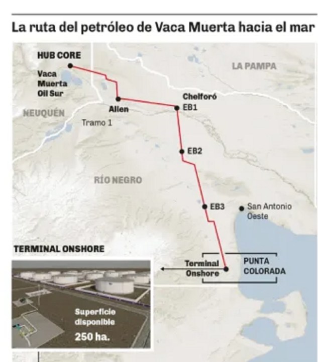 Por dónde pasará el Oleoducto Vaca Muerta Sur en la Región Sur
