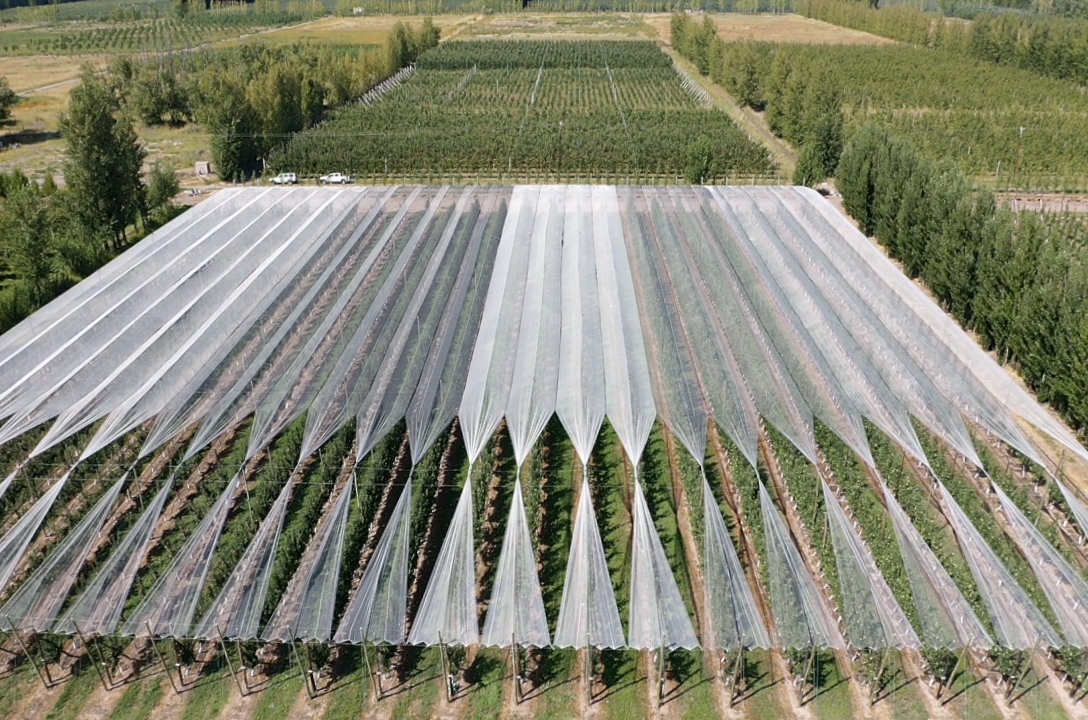 Los ensayos en la parcela cuentan con riego por goteo, poda mecanizada en verde y mallas antigranizo. El manejo de las plantas también incluye raleo, la eliminación de frutos en exceso para disminuir la carga de los árboles, atado de plantas, cosecha y demás labores culturales.