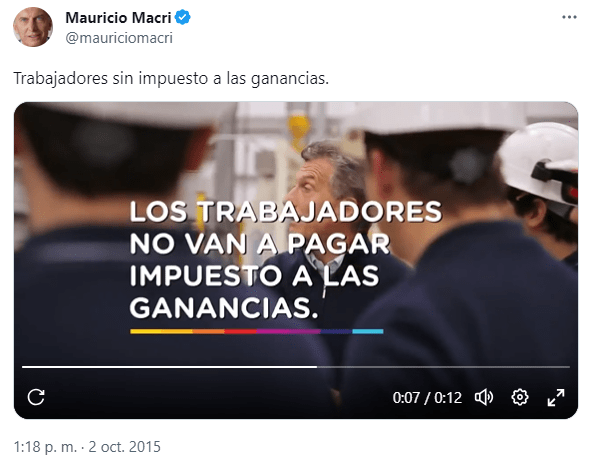 El caso del ex Presidente es todavía más evidente. Durante la campaña electoral que lo coronó en 2015 había prometido «Trabajadores sin impuesto a las ganancias. Es mi compromiso». Durante su mandato se duplicó la cantidad de trabajadores en relación de dependencia alcanzados por el impuesto. Pese a que el ex mandatario no dudó en calificar la medida como «mamarracho electoral», el anuncio de Massa finalmente concreta aquel compromiso de Macri.