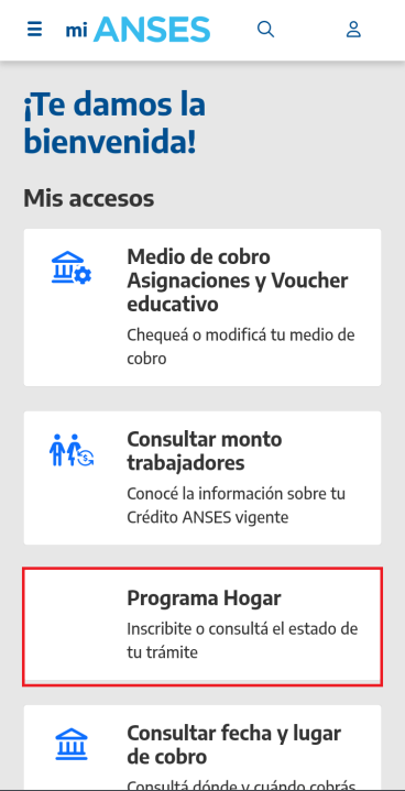 Una vez que hayas ingresado, deberás seleccionar la opción «Programa Hogar», en donde podrás tramitar la inscripción para el cobro del subsidio.