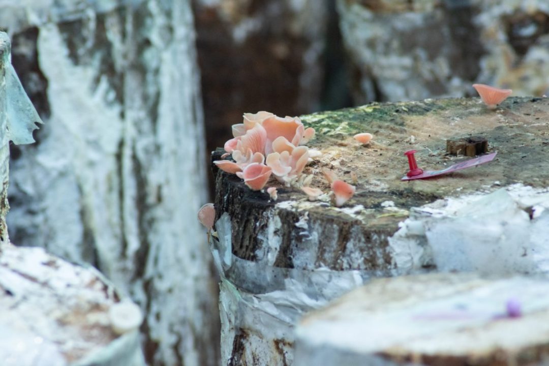 Frente al ascenso de las temperaturas, el diseño de la huerta busca incorporar especies que aporten a la diversidad de la dieta con destacadas cualidades nutricionales. Pleurotus sp, o gírgola, se trata de una variedad de hongos que se desarrolla en troncos de árboles sanos y es capaz de reemplazar los alimentos proteicos de origen animal, inclusive el pescado.