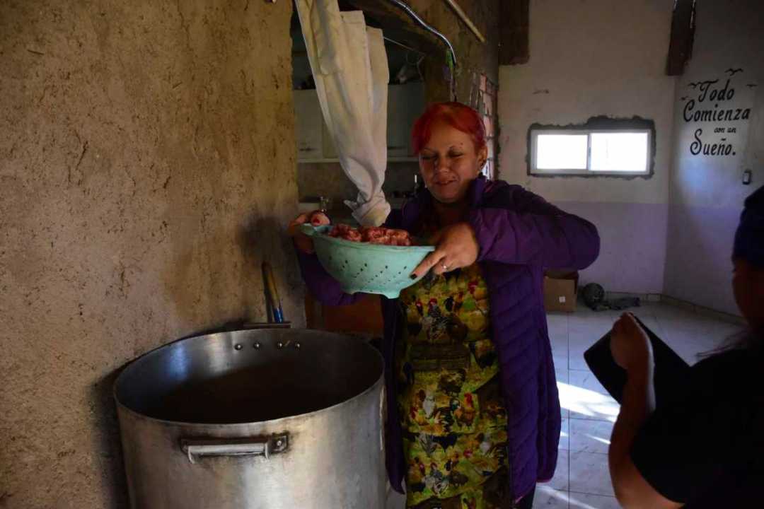 “La verdura la ponemos los compañeros, por ahí hacemos alguna venta de rosquitas, de lo que sea, y nosotros mismos compramos con ese fondito las verduras y un poco de carne”, relató la dirigente barrial.