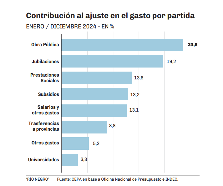 Los datos permiten comprender como es que la propia Oficina Nacional de Presupuesto del Ministerio de Economía de la Nación informa que la licuación de los haberes previsionales aportó el 19,2% del costo del ajuste en 2024, solo por debajo del recorte a la obra pública, que aportó el 23,6%.