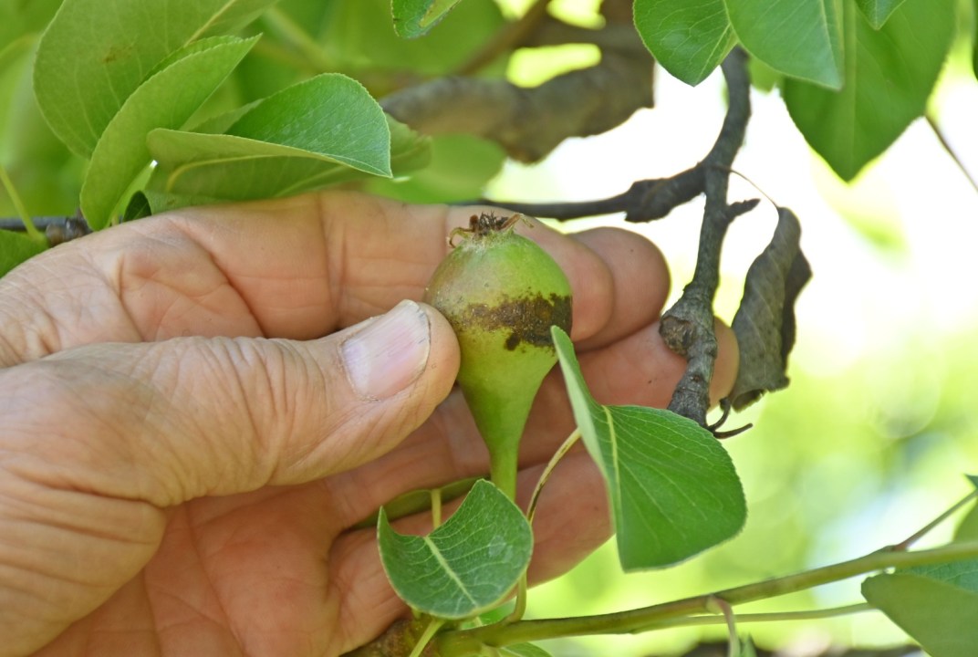 García comentó que la lluvia también tiene un efecto en las variedades de pera como la Williams ya que se origina la plaga de la sarna, que es un ácaro. El referente comentó que el productor tiene un máximo de 72 horas para la aplicación de algún fungicida y tratar esa plaga.