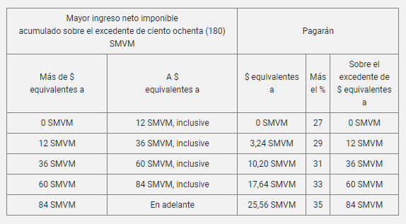 Entre más de 60 y 84 salarios mínimos, se pagará 17,64 SMVM más un 33% sobre el excedente.