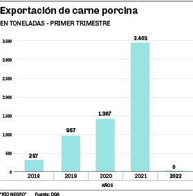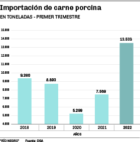 Las estadísticas oficiales dan cuenta de que las importaciones totales de carne de cerdo alcanzaron en este primer trimestre del año las 13.500 toneladas, volumen 80% superior al compararlo con el mismo período del año anterior. Esta cifra representa dos veces la faena anual que se realiza en los frigoríficos de Río Negro y Neuquén.