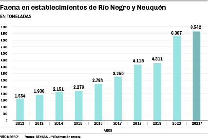 La región productiva ubicada al norte de la Patagonia, si bien maneja volúmenes marginales respecto de la escala existente a nivel nacional, sufre con algo más de fuerza esta retracción.