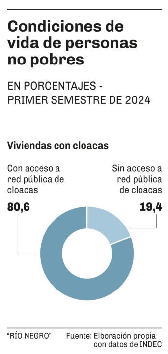 El saldo es notable: el 36,3% de las personas consideradas “no pobres” por sus ingresos no tiene acceso a, al menos, uno de estos tres servicios básicos: agua, gas y/o cloacas.