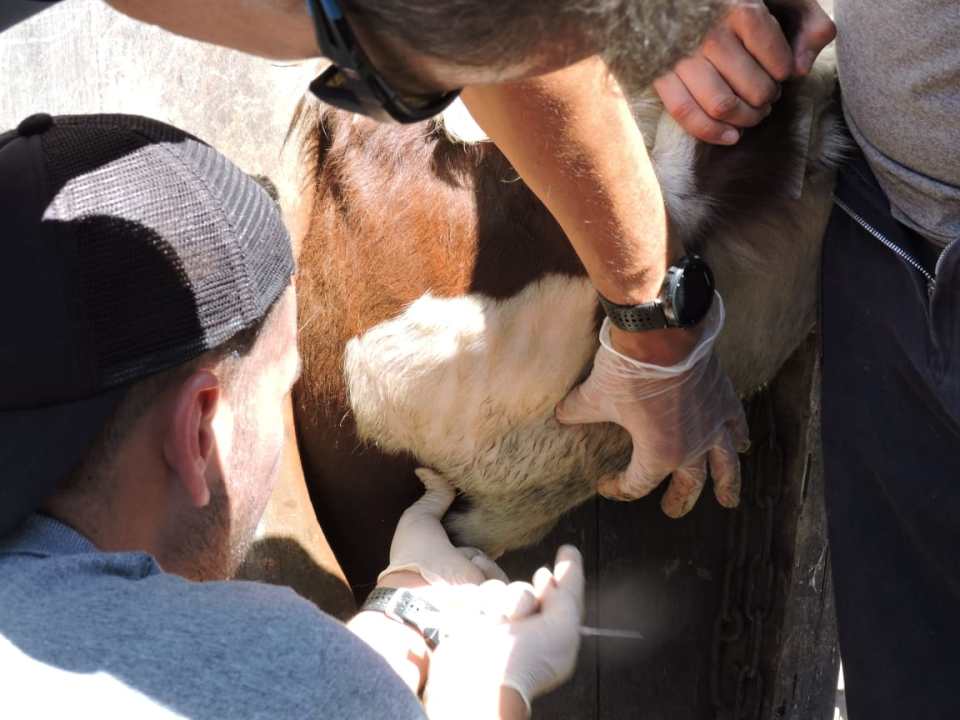 Alumnos de la carrera de Medicina Veterinaria interviniendo con sus saberes en campos de Valle Medio.