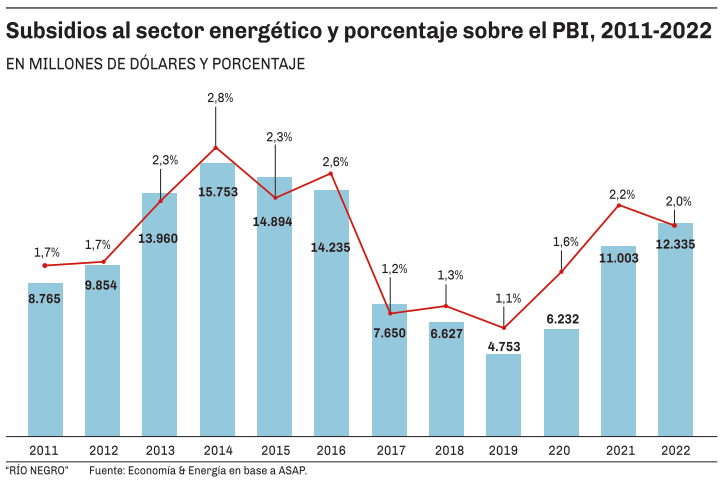- Es el monto de lo que Argentina ha destinado entre 2011 y 2022 a subsidiar las tarifas de la energía.