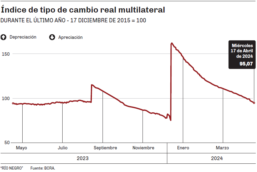 El atraso cambiario en Argentina es veloz: ya se perdió el 78% de la ganancia de competitividad sucedida con la devaluación del 13 de diciembre último. Hoy el ITCRM se encuentra en el mismo nivel que antes del recordado salto devaluatorio del 14 de agosto de 2023, posterior a las elecciones primarias presidenciales.