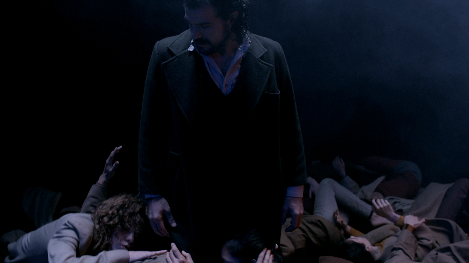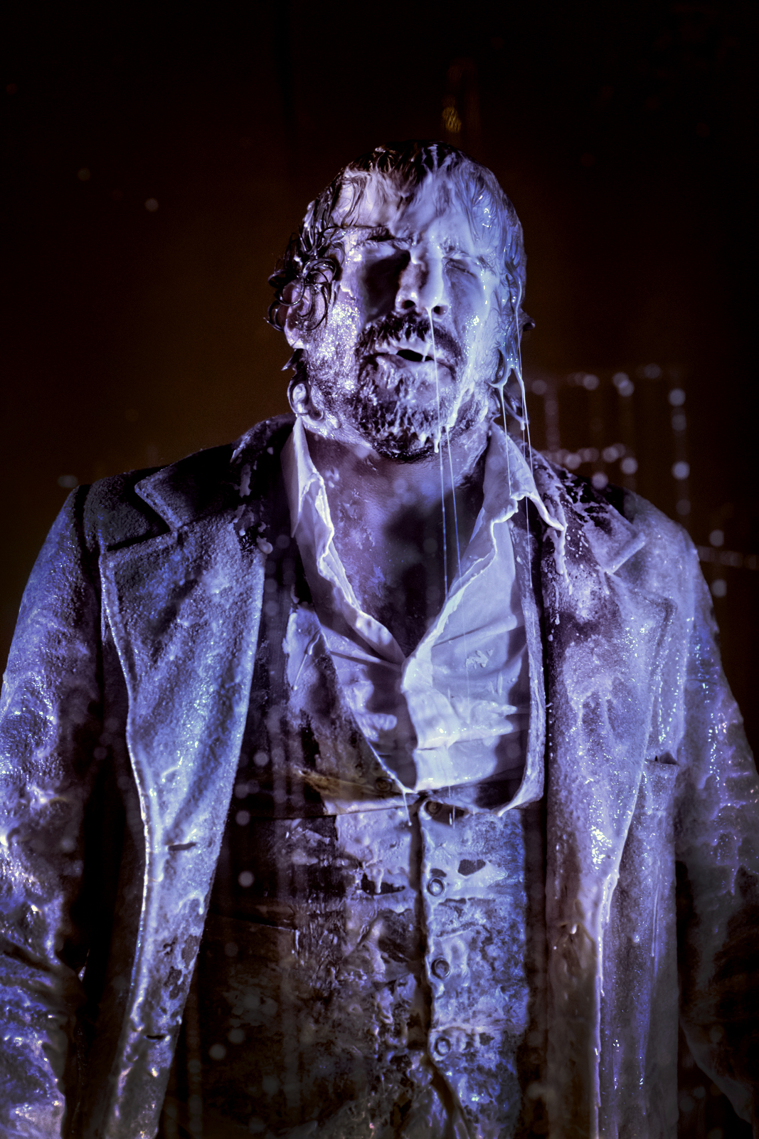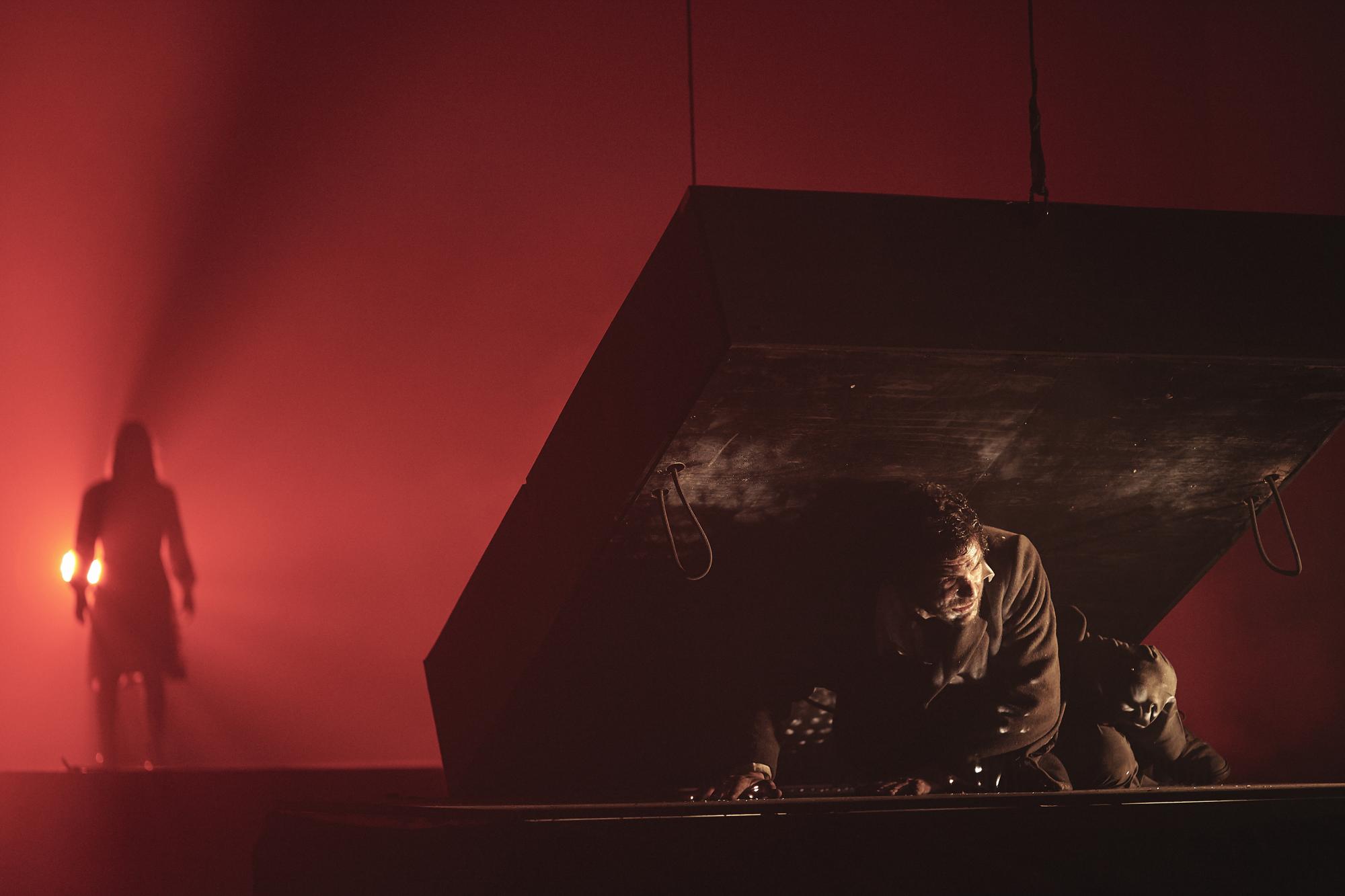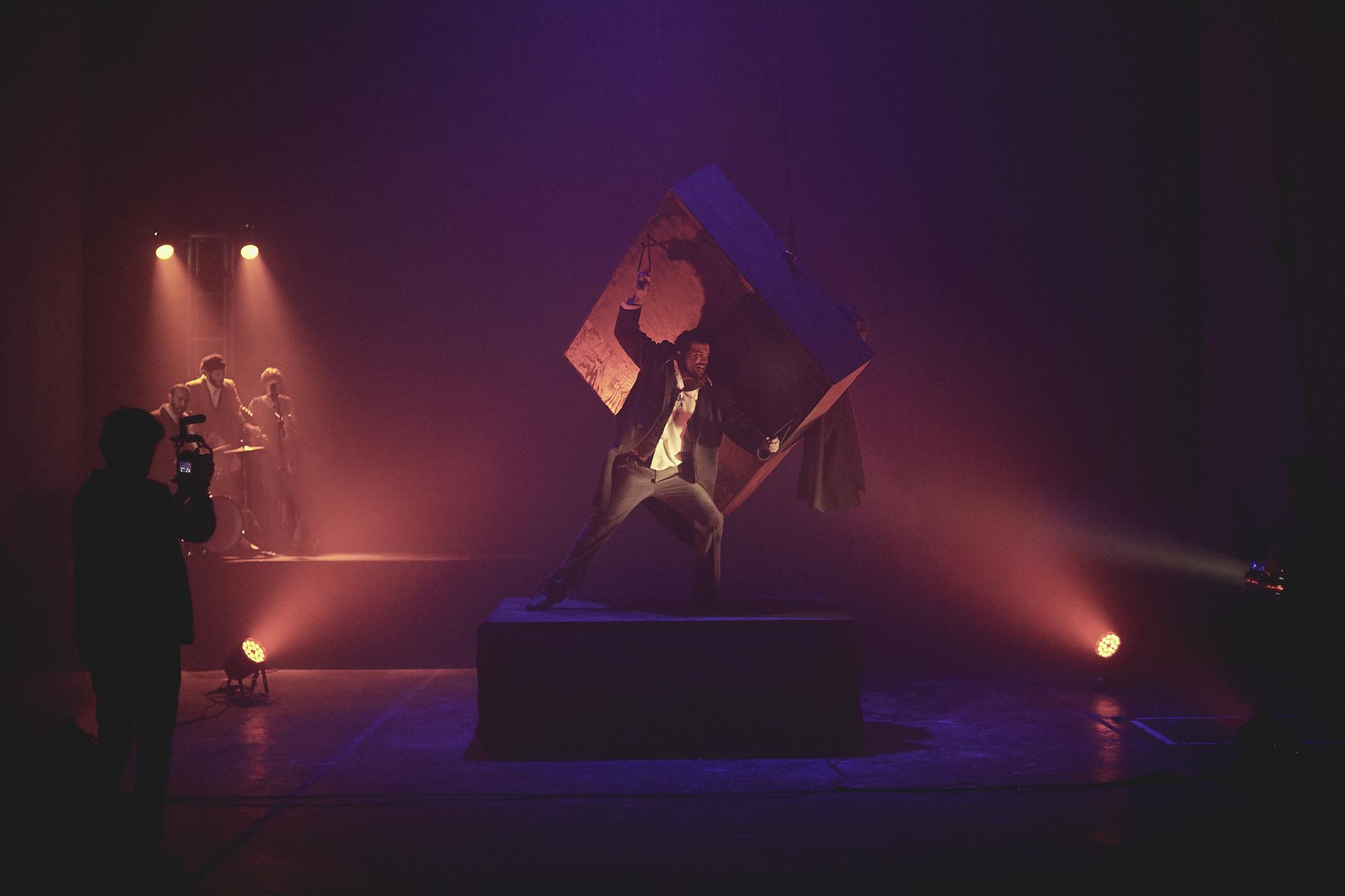 - “La estética es cinematográfica, pero el lugar es un teatro”, revela Mariano Panelo. A su vez, los actores se cuelgan de arneses y suben a estructuras que suben y bajan, y se ponen en juego además sustancias, como por ejemplo un líquido que se mueve con las vibraciones, entre otras cosas que suceden en paralelo.