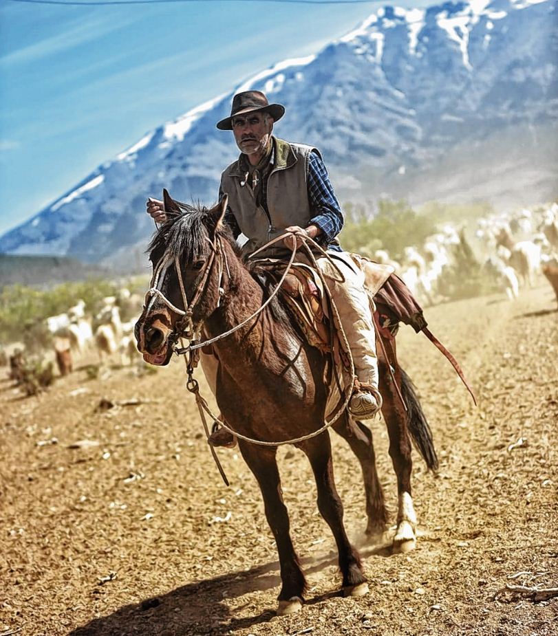 De la aridez a las laderas verdes y los picos nevados cambian los paisajes, pero el esfuerzo continúa. “Para esto no se estudia pero hay que saber hacerlo”, dice él, la mirada a los ojos, el rostro curtido por el sol protegido por el sombrero, la certeza de que pocos saben lo que se sufre en estos arreos que pueden llegar a durar entre veinte días y un mes según el estado de los animales.