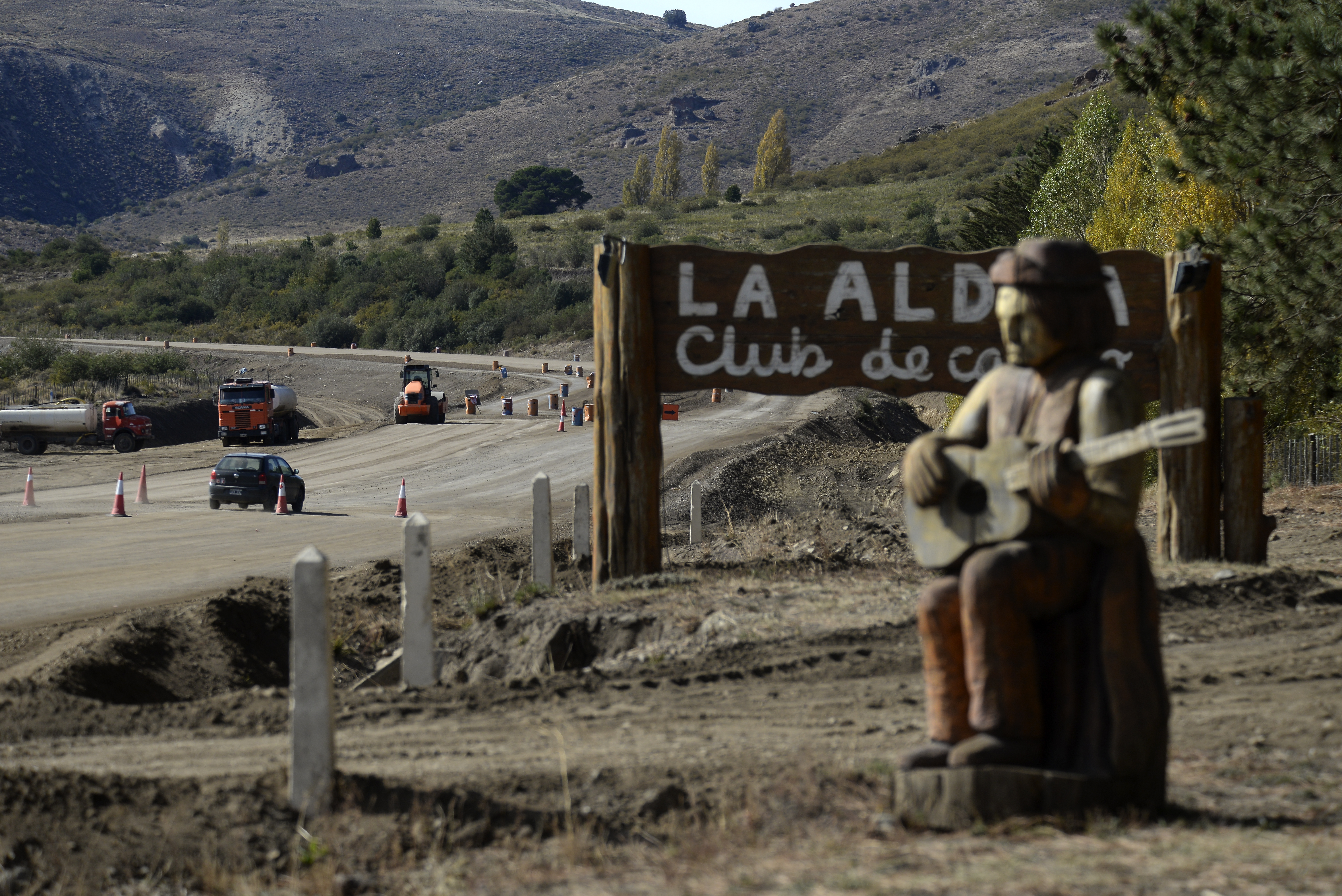 Los operarios concentran sus tareas a la altura del cerro Leones, a unos 2 kilómetros del empalme de la Ruta 40. Ayer, por el día no laborable, pocas máquinas seguían con su rutina de compactación de la nueva traza justo frente al complejo La Aldea pero los días hábiles se multiplican los obreros.