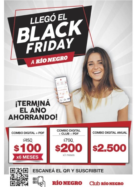 Este viernes, 26 de noviembre, comenzó un nuevo Black Friday, con ofertas y descuentos de todo tipo. Desde el diario RÍO NEGRO somos parte para que puedas aprovechar todos nuestros contenidos y los beneficios de ser parte del Club Río Negro.