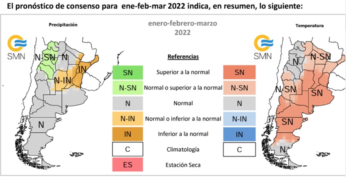 En el Litoral se esperan precipitaciones inferiores a las habituales; normales o inferiores a lo normal en Córdoba y el oeste de Santa Fe, y normales o superiores a las normales en la región del NOA.