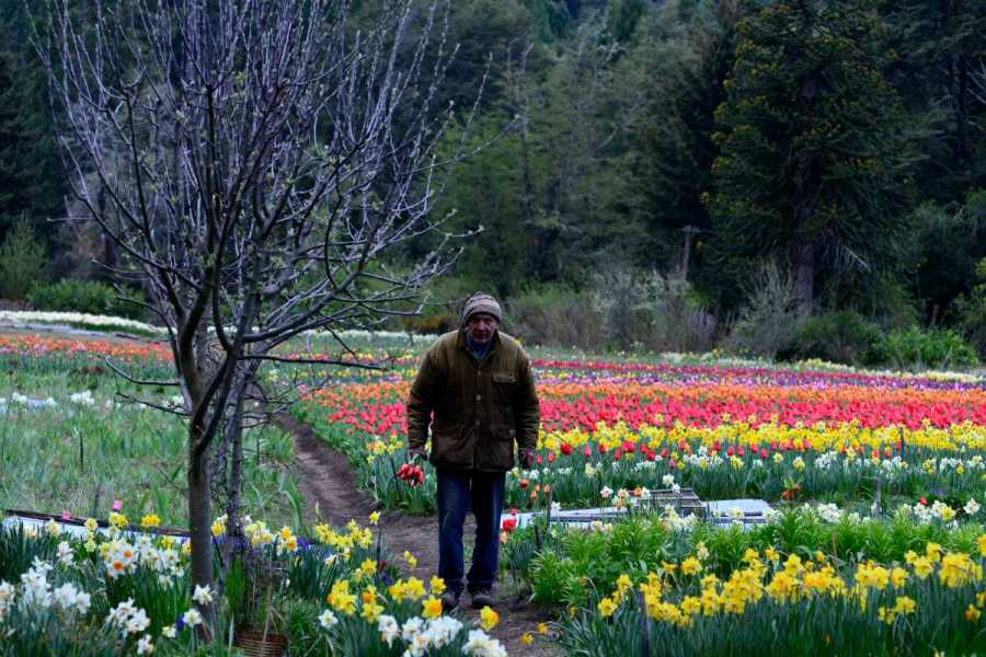 Pedro Smekal cultiva tulipanes desde hace 50 años en la Península San Pedro. En octubre florecen y son un atractivo para los residentes.