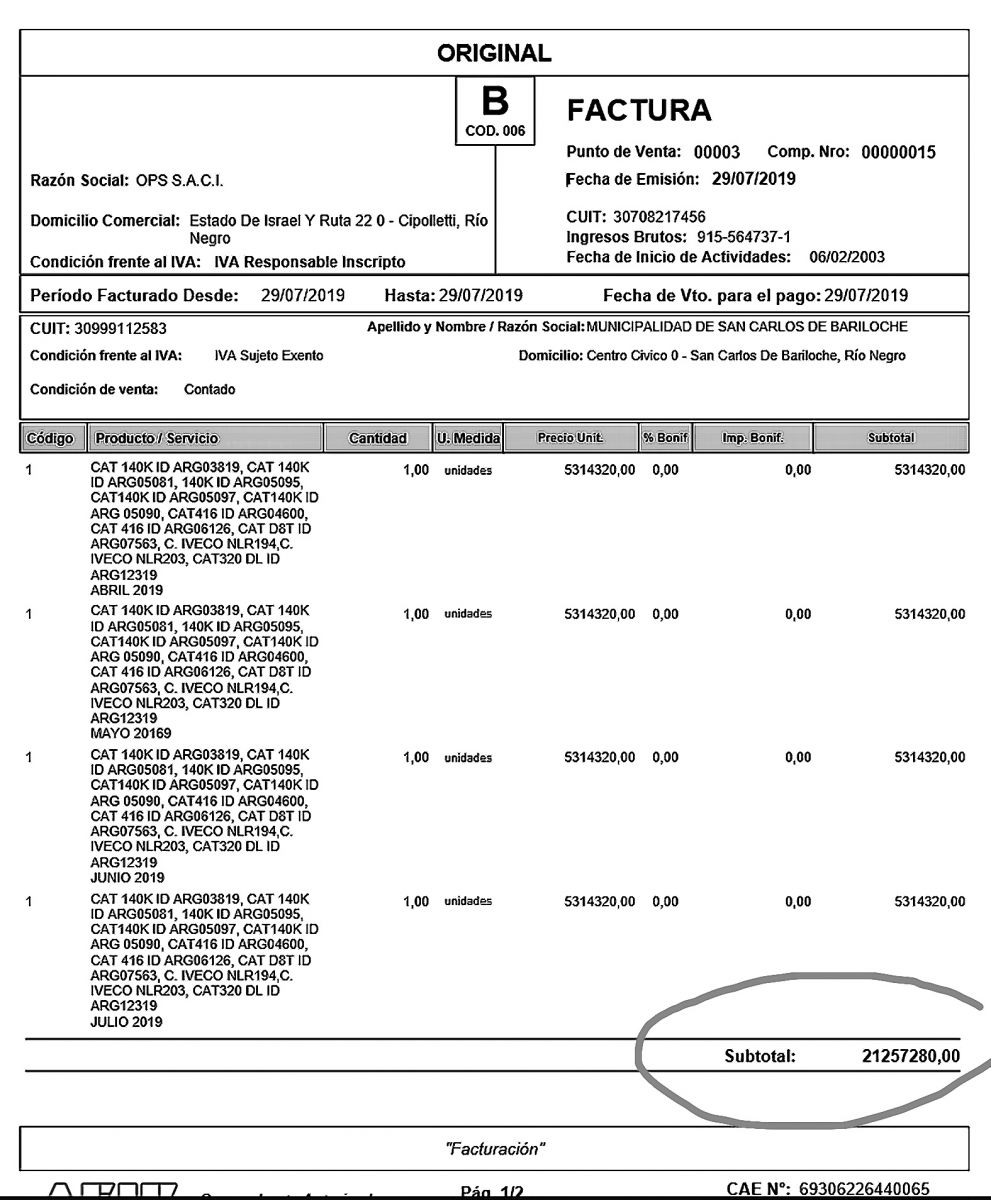Por esos 19 equipos, la quiebra de OPS le facturó al municipio de Bariloche 21.257.280 pesos, pero Gennuso le dijo a “Río Negro” el lunes pasado que la síndico calculó como si las máquinas hubieran funcionado las 24 horas del día.