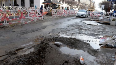 El centro de Bariloche, repleto de barro por las lluvias