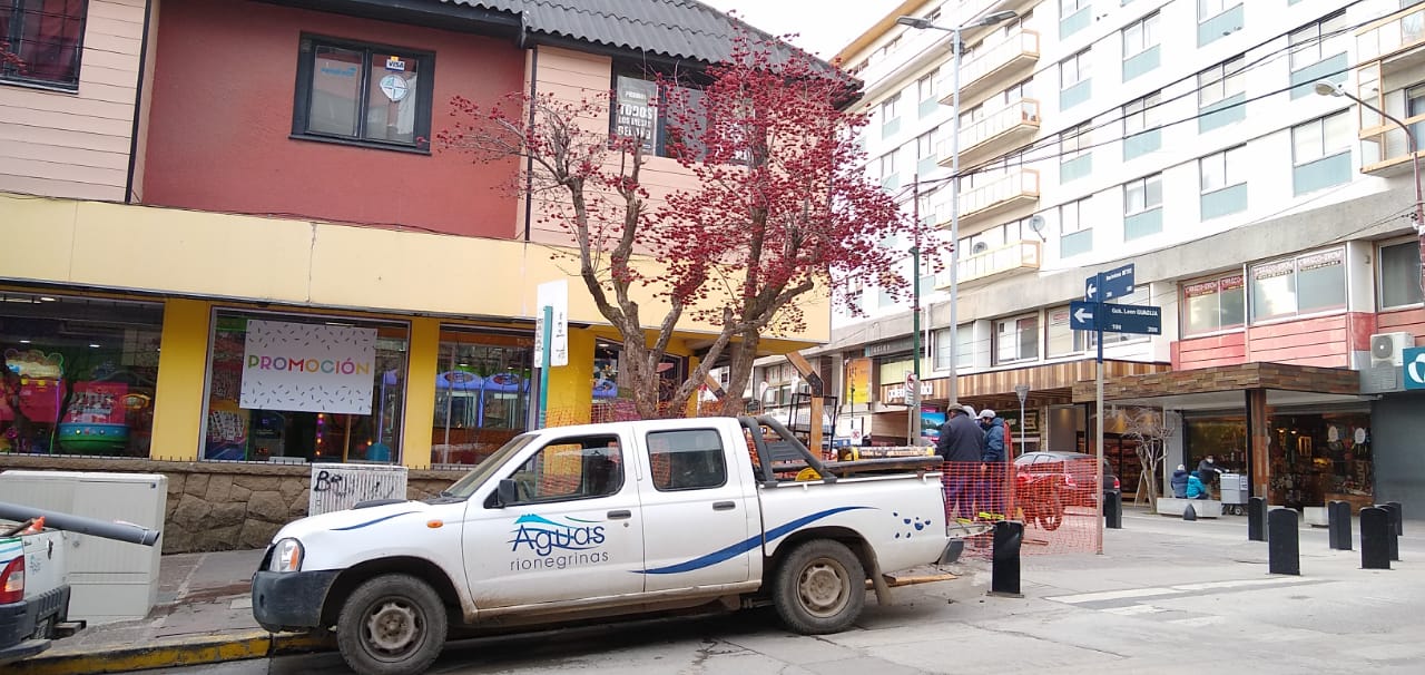 La zona céntrica de Bariloche desde las inmediaciones del Centro Cívico por un radio de 10 cuadras se quedó sin agua potable por la rotura de una cañería en la intersección de Mitre y Quaglia.